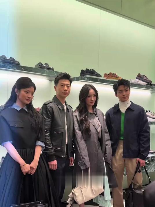 照片里的细节藏着不少门道。站C位的杨幂一身黑色Prada皮衣套装,冷白皮配直角肩的生图状态让网友直呼"穿Prada的女王",怼脸镜头里巴掌大的小脸比手还小;旁边的徐若晗穿浅色系套装,温柔千金风造型和杨幂形成鲜明反差,皮肤透亮得像自带打光;最有意思的是翟子路,作为现场"气氛担当",他主动牵线让杨幂和马龙握手的画面被抓拍,被粉丝笑称为"顶流社交天花板"。